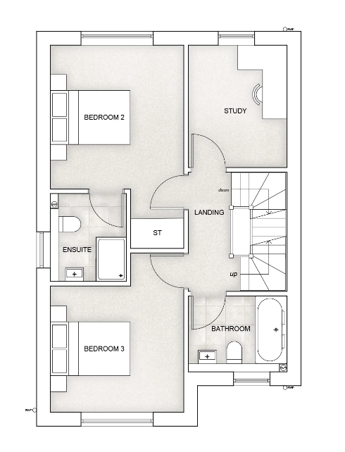 • Stylish family bathroom and two en-suites with porcelain tiled floors (specific to this house type)