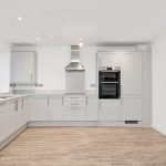 • Halesworth Dove Grey shaker-style kitchen with Silestone Bianco Calacatta worktops and separate utility room