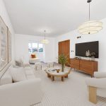 • Satin chrome downlights and brushed chrome power sockets throughout; combination of pendant and downlighting per electrical plan