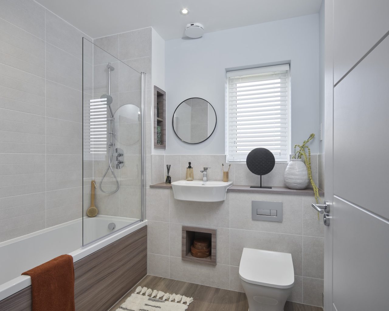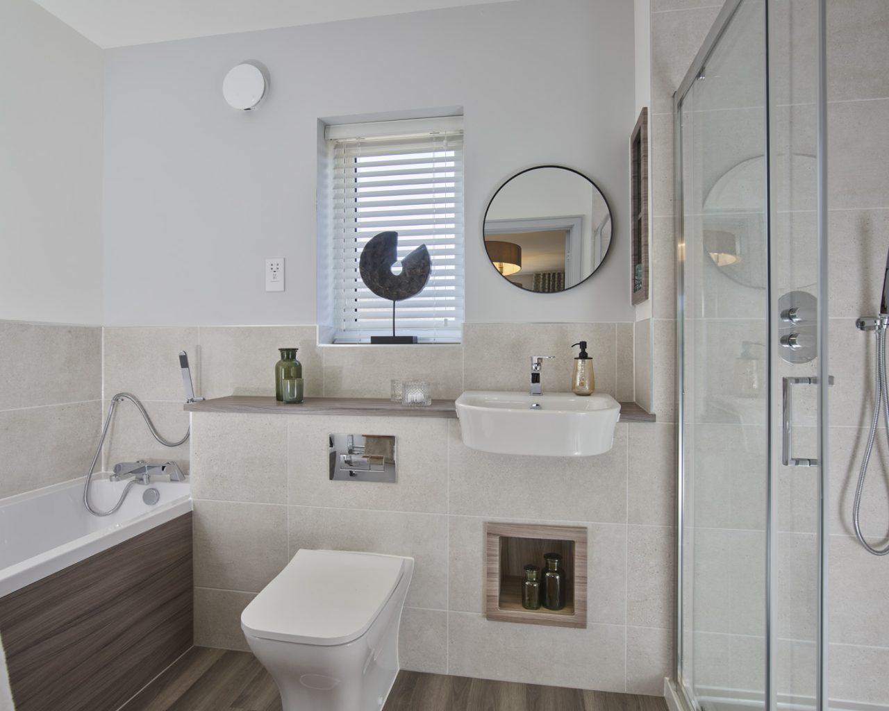 - Luxurious four-piece en suite with rainfall shower to the principal bedroom.