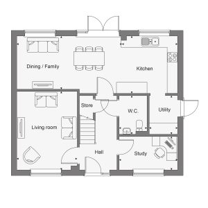 Step inside The Chartwell and you’ll immediately appreciate its generous sense of space, showcased perfectly in the expansive open-plan kitchen, dining, and family area. With French doors opening to the rear garden, it’s an ideal setting for family living and entertaining. The Chartwell also benefits from having a separate lounge to the front and a secondary reception room ideal as a home office or play room making this home truly versatile.